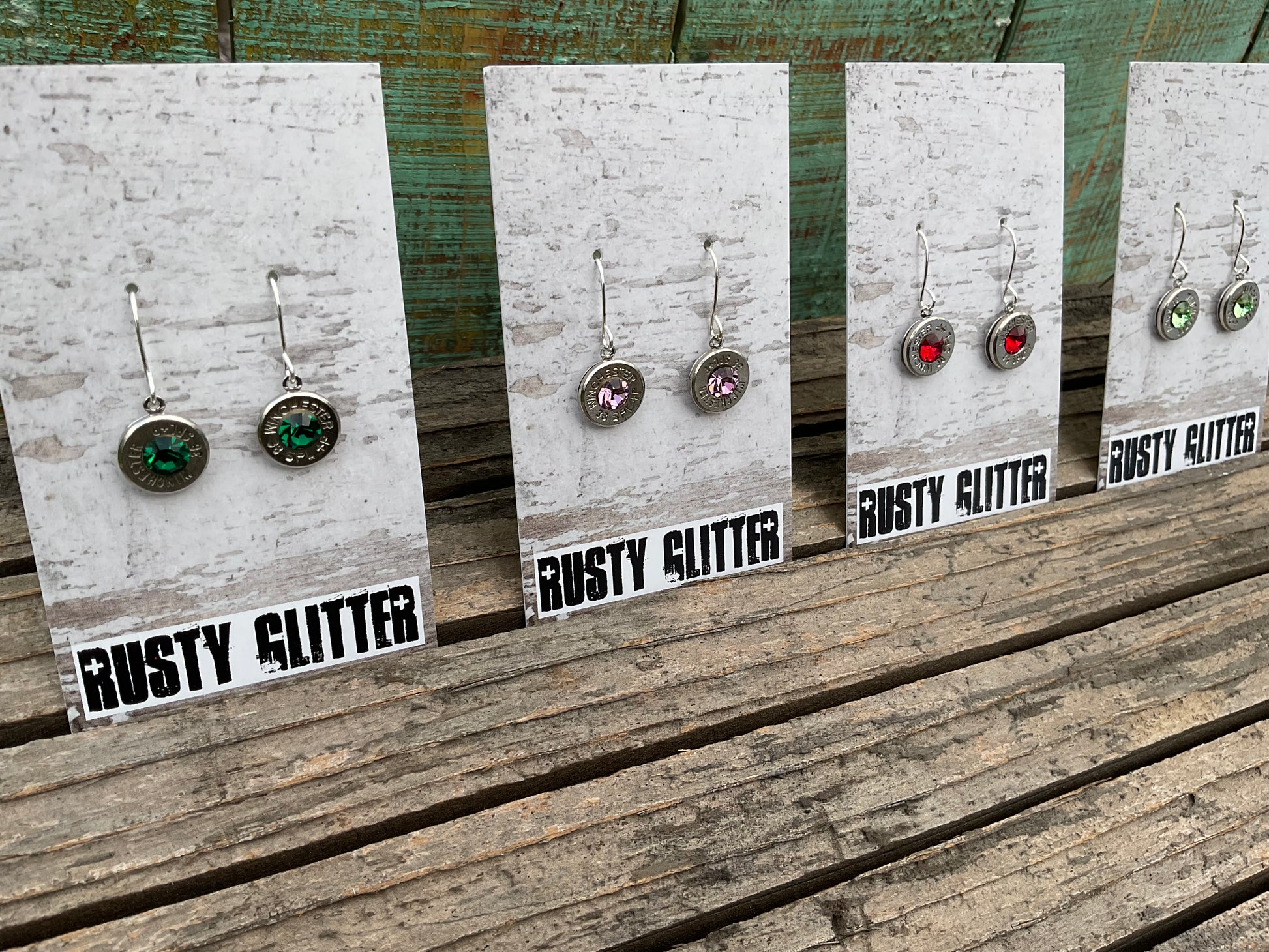 Prefer not to wear studs? Then a bullet on a wire is perfect for you! Single bullets dangling on surgical stainless wire.