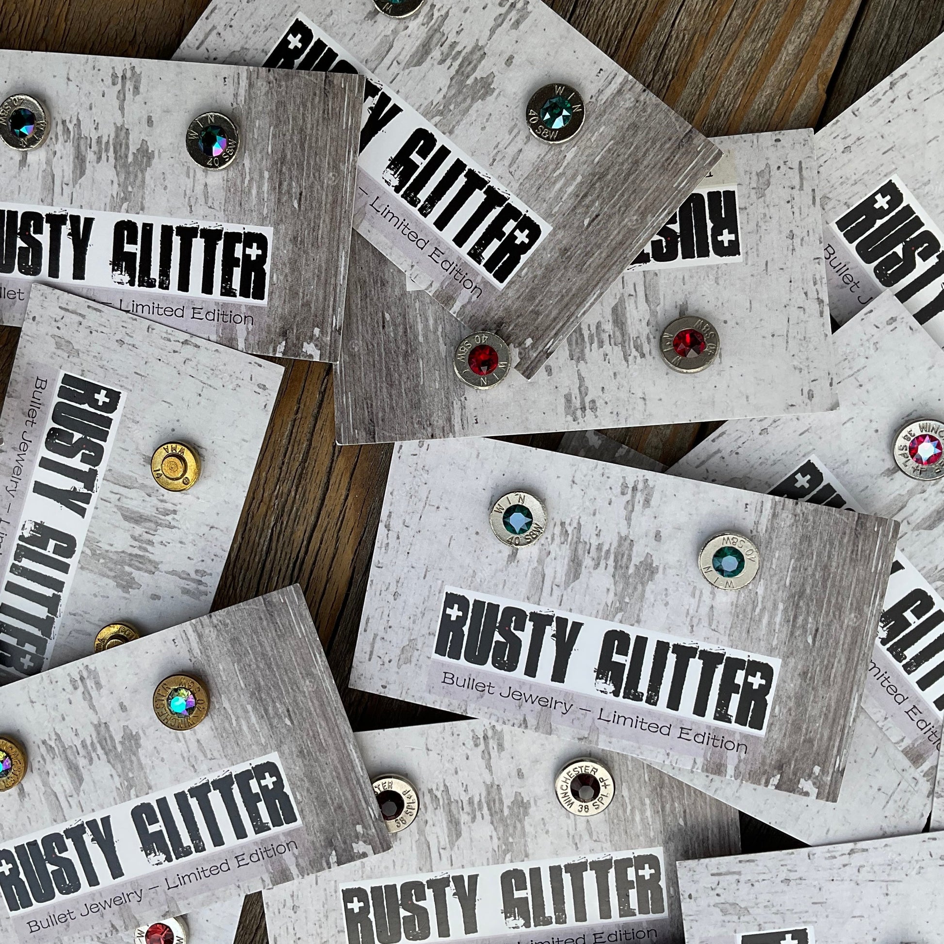 Box will contain pair of post bullet earrings on surgical stainless steel posts with a gorgeous limited edition or retired crystal color available only at our shows. Crystal color and type of bullet will be a total surprise, and will be chosen with love.